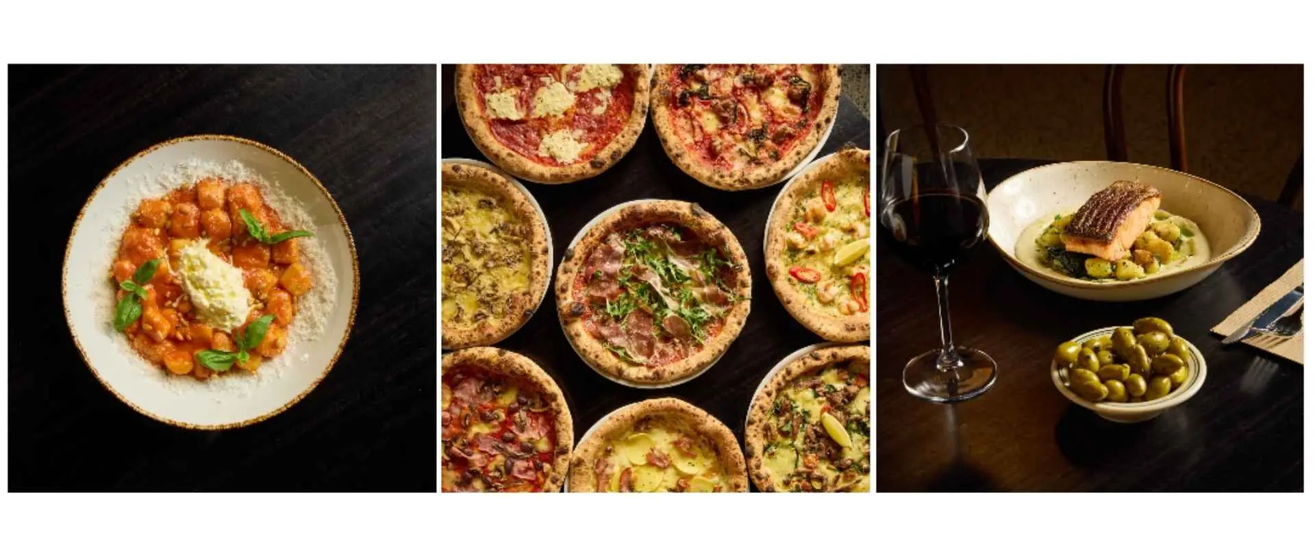 Signature dishes include creamy burrata served with heirloom tomatoes, house-made pastas, wood-fired pizzas, and premium seafood and meats prepared with care. The wine list showcases a thoughtful selection of Italian varietals and local favourites, while handcrafted cocktails provide the perfect accompaniment for an aperitivo or a night out.
